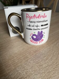 To nie tylko kubek, długopis i notesy — to zestaw, który realnie ułatwia pracę i wprowadza trochę lekkości nawet podczas najbardziej intensywnego dnia w rejestracji.