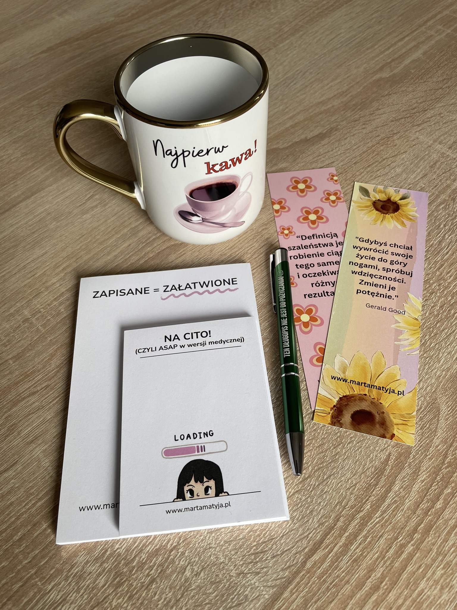 To nie tylko kubek, długopis i notesy — to zestaw, który realnie ułatwia pracę i wprowadza trochę lekkości nawet podczas najbardziej intensywnego dnia w rejestracji.